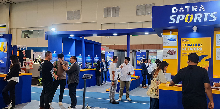 The booth of PT Datra Internusa stood tall and full of character, blending elegant, interactive, and energetic design. Among dozens of exhibitors, Datra stood out not merely showcasing products, but telling the story of four decades of helping shape the face of Indonesian sports.
