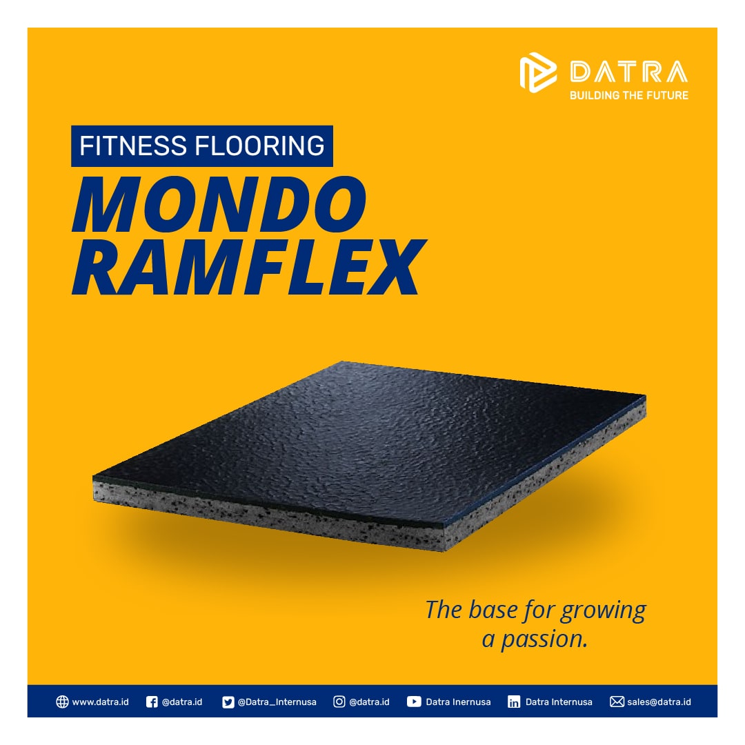 Mondo Ramflex: Naik satu level dari Reflex, Mondo Ramflex mempunyai lapisan yang lebih tebal yakni 6 mm, 8 mm (versi interlock) dan 10 mm. Ketebalan karet vulkanisasi khusus pada Mondo Ramflex ini cocok untuk ruangan gym atau yoga yang memungkinkan lantai dapat menahan beban alat-alat fitness ringan seperti barbell, dumbbell, treadmill dan lainnya. Selain dipakai untuk fitness, lantai ini juga cocok untuk untuk ruangan dengan lalu lintas yang tinggi seperti di perkantoran. Tersedia juga dalam bentuk interlock yang dapat dibongkar pasang. Lantai ini sudah memiliki sertifikasi anti-bakteri dan juga ramah lingkungan dari Greenguard.