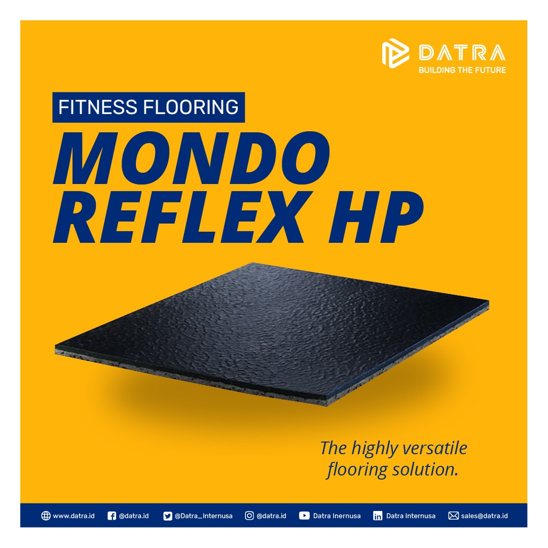 Mondo Reflex: lantai indoor berbahan karet hasil vulkanisasi ini cocok untuk ruang fitness atau senam yang tidak membutuhkan alat berat. Lantainya juga cocok digunakan di ruang serbaguna atau ruang loker. Memiliki ketebalan 4 mm dan sudah bersertifikat Greenguard yang menjamin bahan karet aman dari zat-zat kimia berbahaya dan ramah lingkungan.