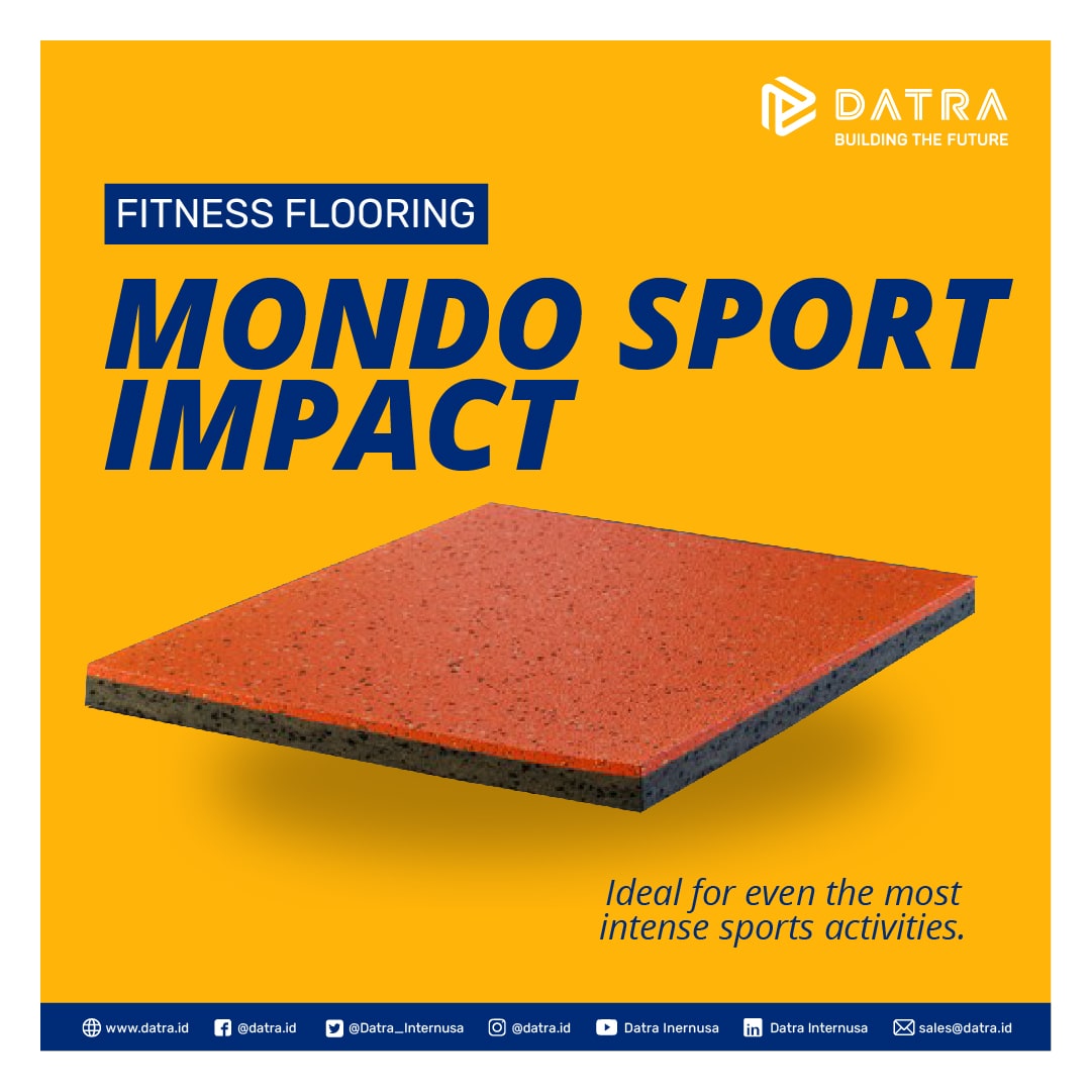 Mondo Sport Impact: Mondo Sport Impact adalah jawaban untuk lantai fitness yang membutuhkan lantai berkualitas dan sanggup menahan beban dari alat-alat cardio seperti treadmill dan juga alat fitness seperti barbel. Lantai ini memiliki design dotted yang simpel dengan ketebalan 6 mm dan 10 mm. Lantai ini sudah memiliki sertifikasi anti-bakteri dan juga ramah lingkungan dari Greenguard.