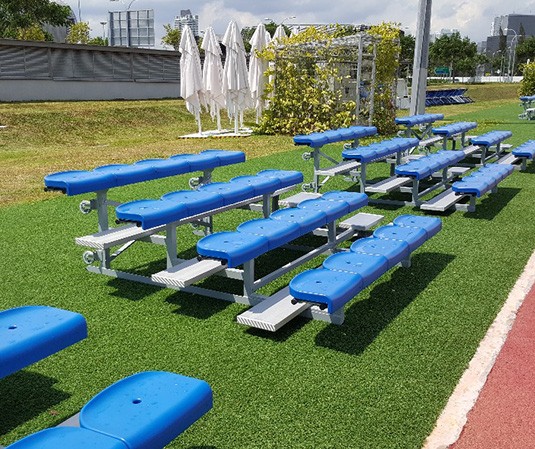 Datra Sports Aluminium Bleachers 4 Row 3m menawarkan solusi tribun berkapasitas tinggi dengan fokus pada efisiensi biaya. Dirancang untuk memaksimalkan jumlah tempat duduk dalam anggaran terbatas, model ini memberikan rasio harga per kursi paling hemat bagi fasilitas dengan kebutuhan penonton besar.